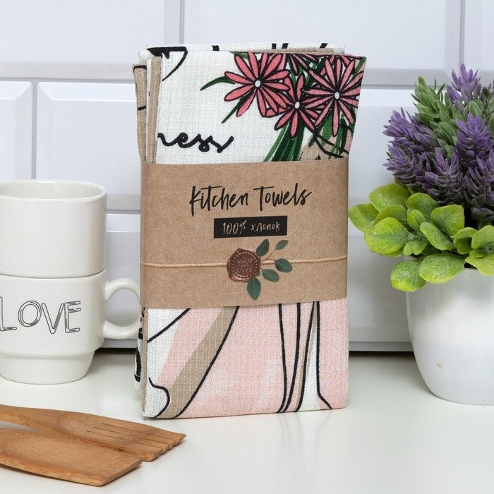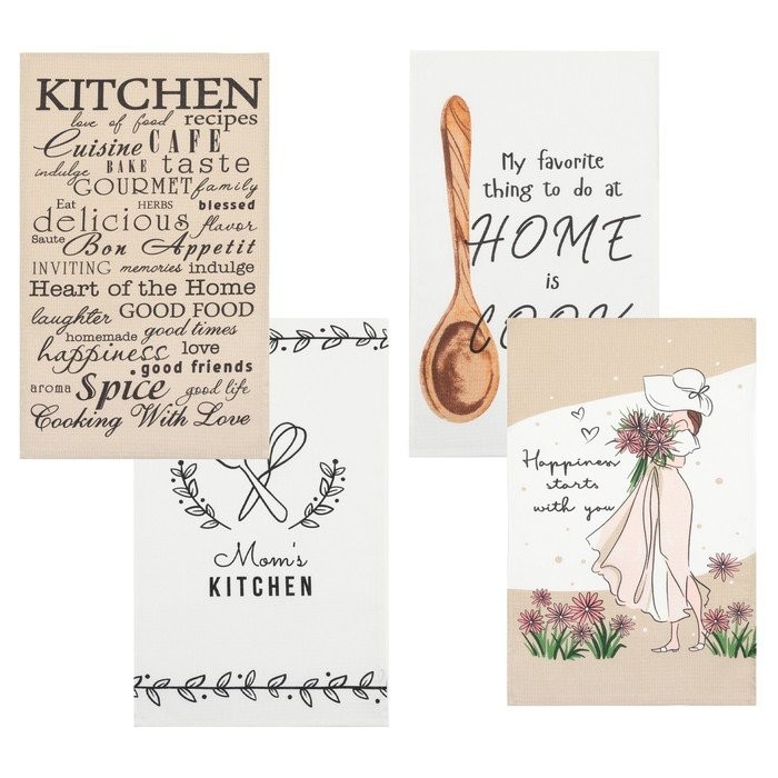 Набор кухонных полотенец Доляна Happiness, 35×60 см -4 шт, 100% хл, вафля 160 г/м2