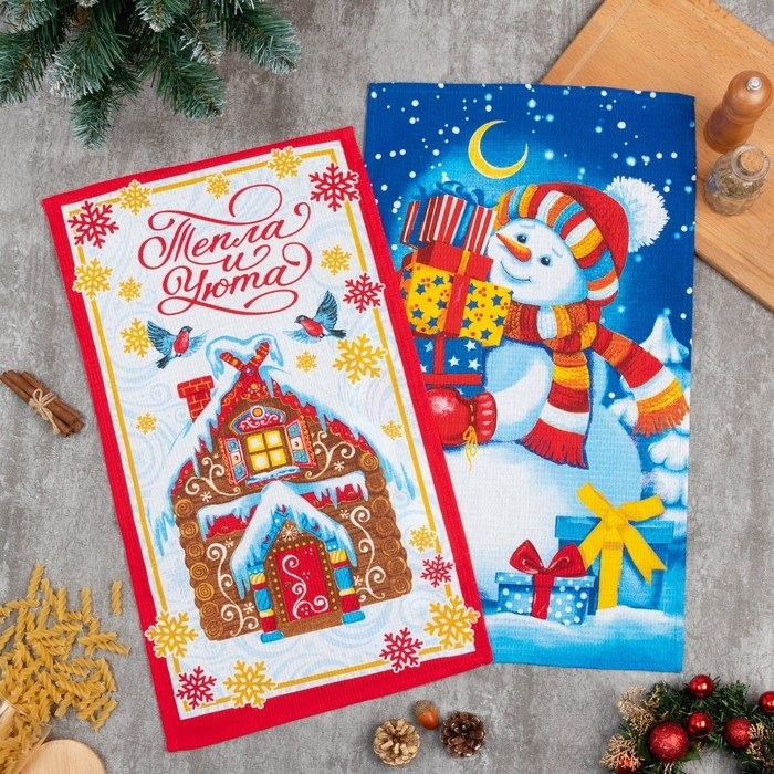 Набор полотенец кух. «Доляна» Пряничный домик 35х60см-2шт, 100% хл