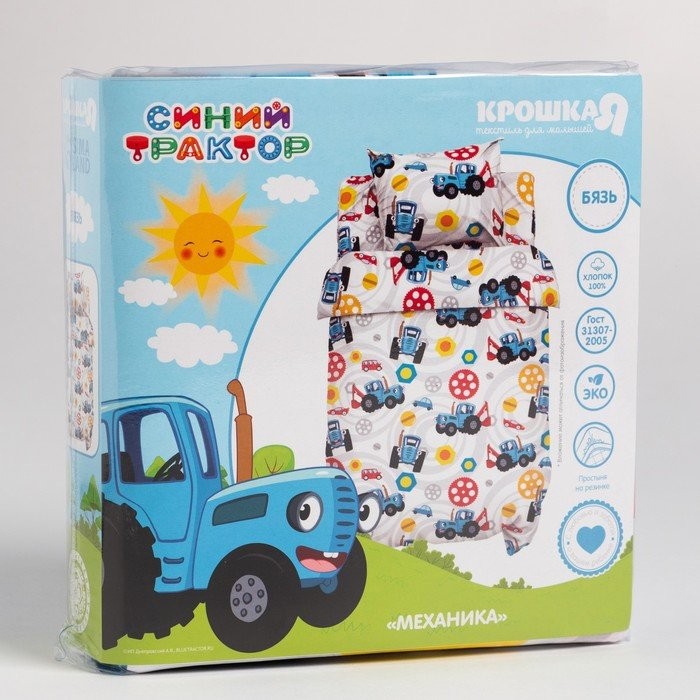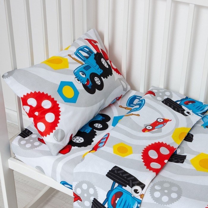 Постельное бельё Синий трактор «Механика» 112×147 см, 60×120+20 см, 40×60 см, 100% хлопок, бязь 125 г/м2