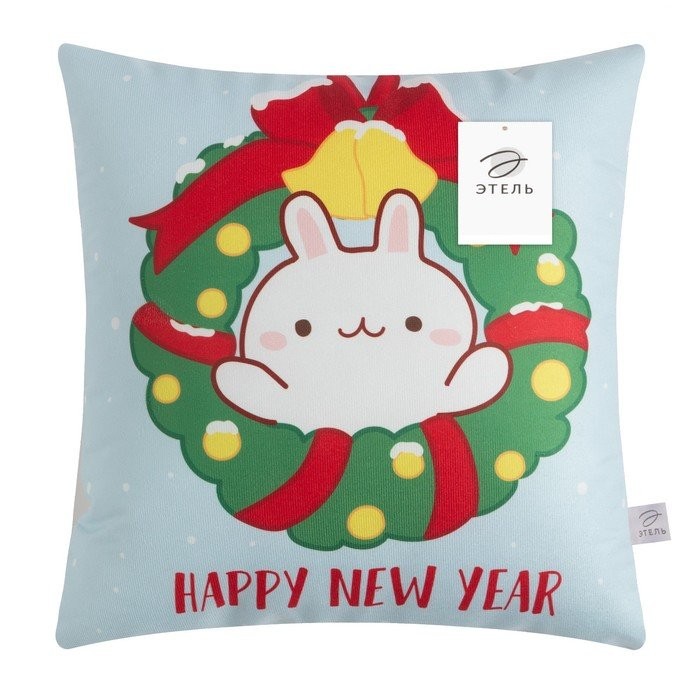 Подушка декоративная «Зайчик в венке», 40*40 см, 100% п/э, велюр