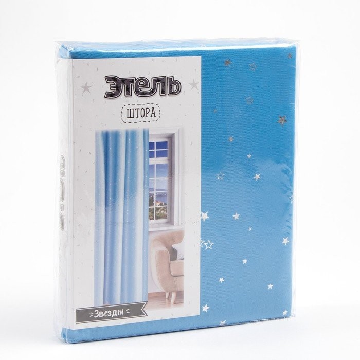 Портьера Этель «Звезды» без держателя, цвет голубой, 145×260 см, блэкаут, 100% полиэстер