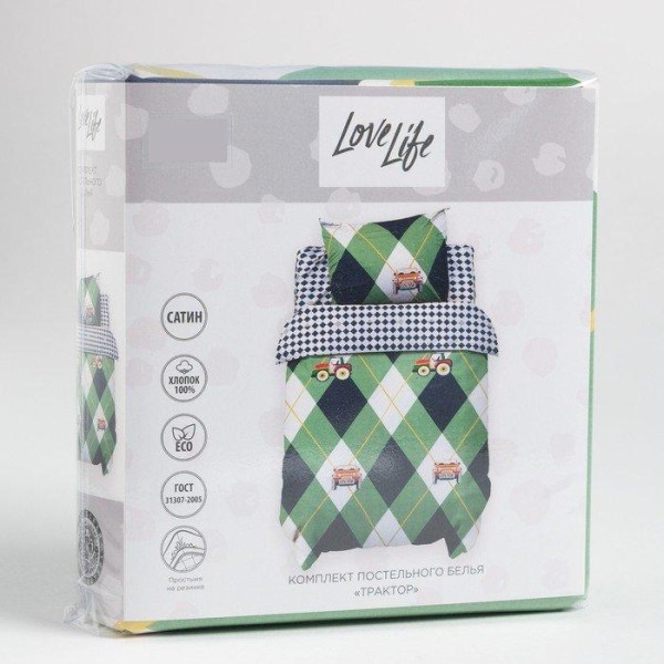 Постельное бельё 1.5сп LoveLife «Трактор» 143×215 см, 150×225 см, 50×70 см-1 шт, 125г/м2 сатин