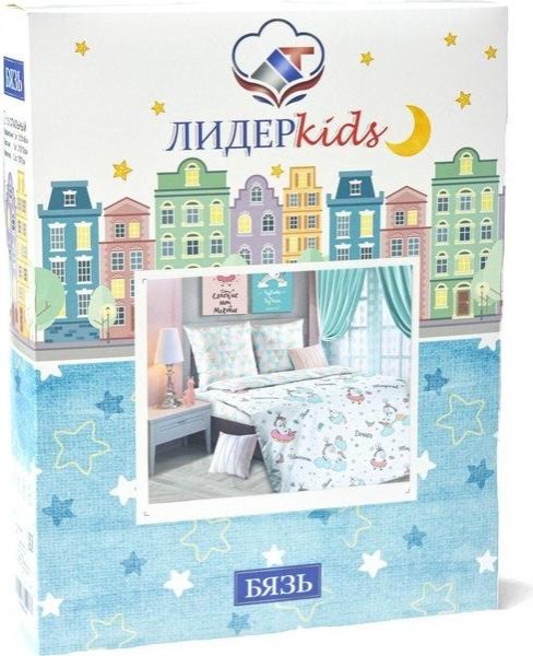 Постельное бельё 1,5сп ЛидерТекс Единорожки 145×215, 150×215, 70×70 1шт, бязь 120гр/м хл100%