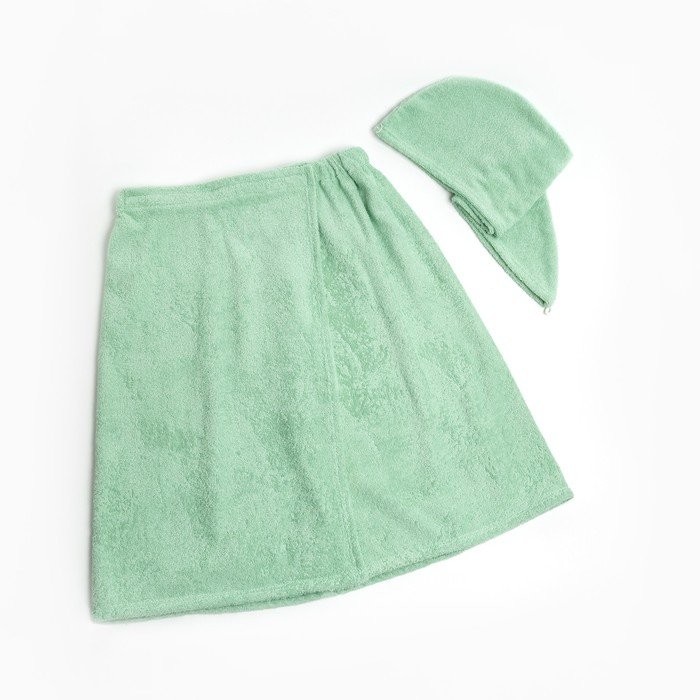 Набор для сауны Экономь и Я: полотенце-парео 68*150см +чалма, цв.св-оливковый,100%хл,320 г/м2