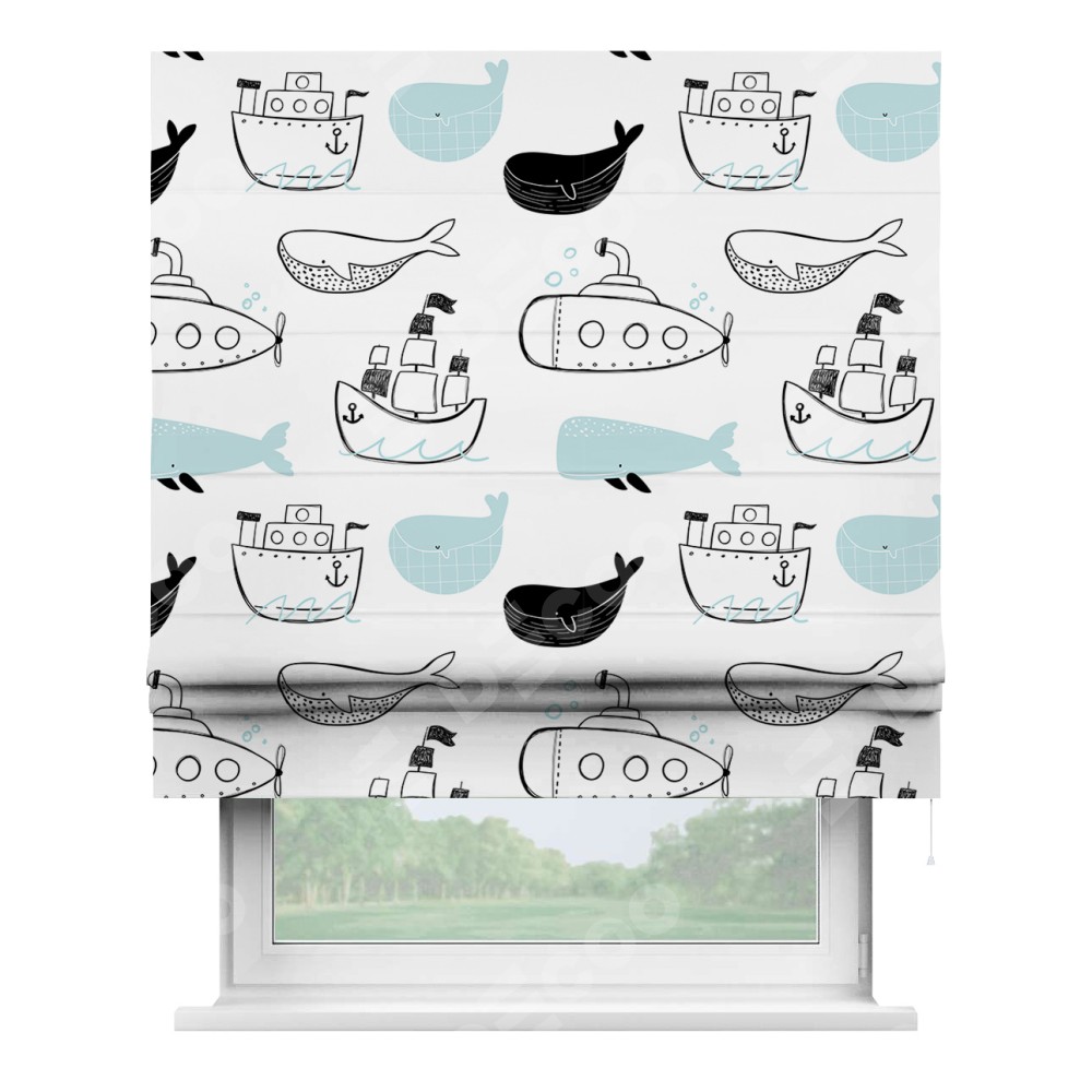 Римская штора производителя «Cortin», используется для проёма, пошита из ткани блэкаут с нанесением сублимационной печати «Морская прогулка». Имеет универсальный механизм и подходит для монтажа: на потолок, на стену и в нишу.