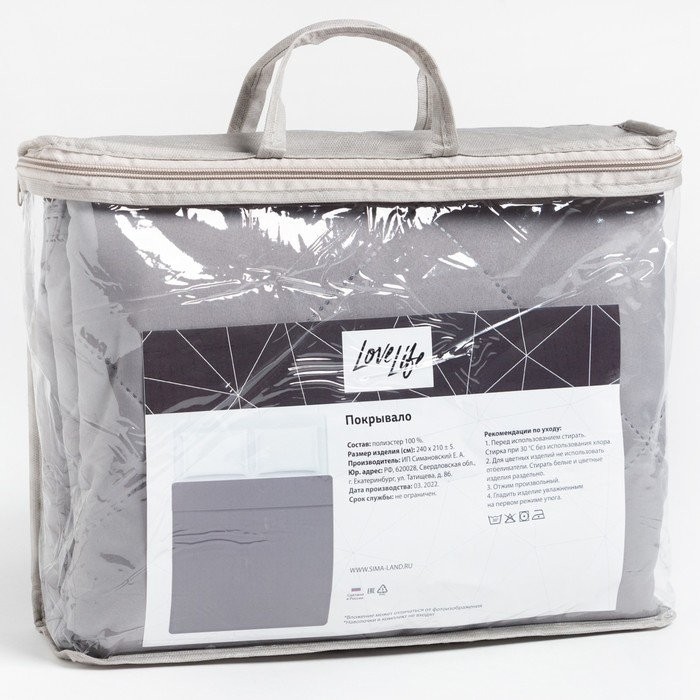 Покрывало LoveLife 2 сп 180×210±5 см, цвет серый, микрофайбер, 100% п/э