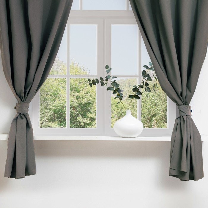 Комплект штор д/кухни с подхватами Этель Kitchen, цв. серый, 150×180 см — 2 шт