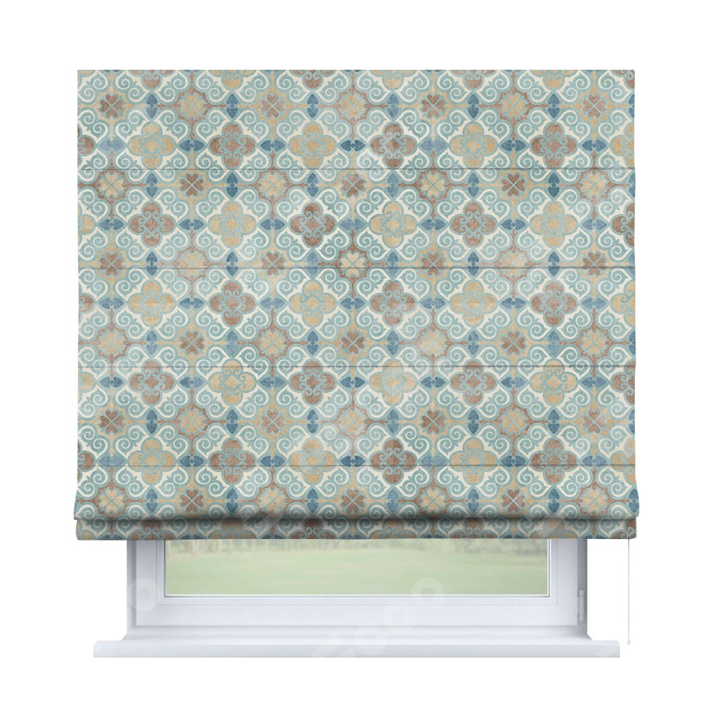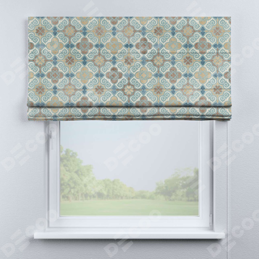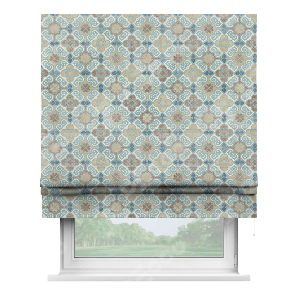 Римская штора производителя «Cortin», используется для проёма, пошита из ткани блэкаут с нанесением сублимационной печати «Фарида». Имеет универсальный механизм и подходит для монтажа: на потолок, на стену и в нишу.