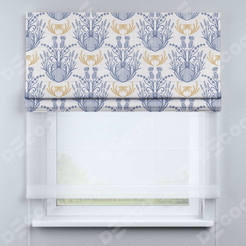 Римская штора день-ночь производителя «Cortin», используется для проёма, пошита из двух полотен, с лицевой блэкаут с нанесением сублимационной печати «Шикарная лаванда», вторая ткань тюль (по стандарту комплектуется тюль белого цвета артикул V-01). Имеет универсальный механизм и подходит для монтажа: на потолок, на стену и в нишу.