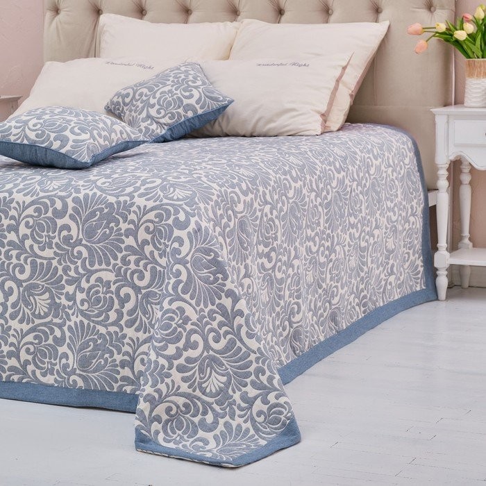 Покрывало хлопковое Этель «Узоры» 200×240 см, цвет серый, 100% хлопок, 300гр/м2