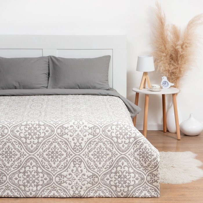 Покрывало хлопковое Этель «Орнамент» 150×240 см, цвет серый, 100% хлопок, 300гр/м2