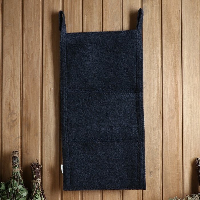 Коврик банный настенный, войлок, 3 кармана 79×36 см черный