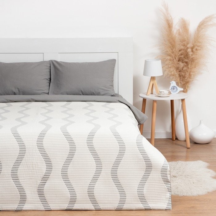 Покрывало хлопковое Этель «Волны» 150×240 см, цвет серый, 100% хлопок, 300гр/м2
