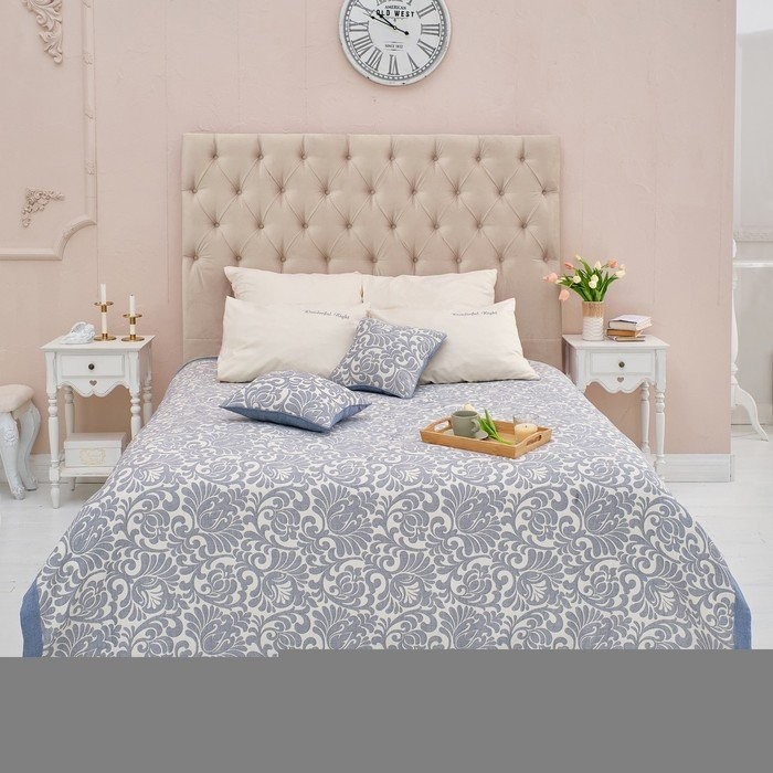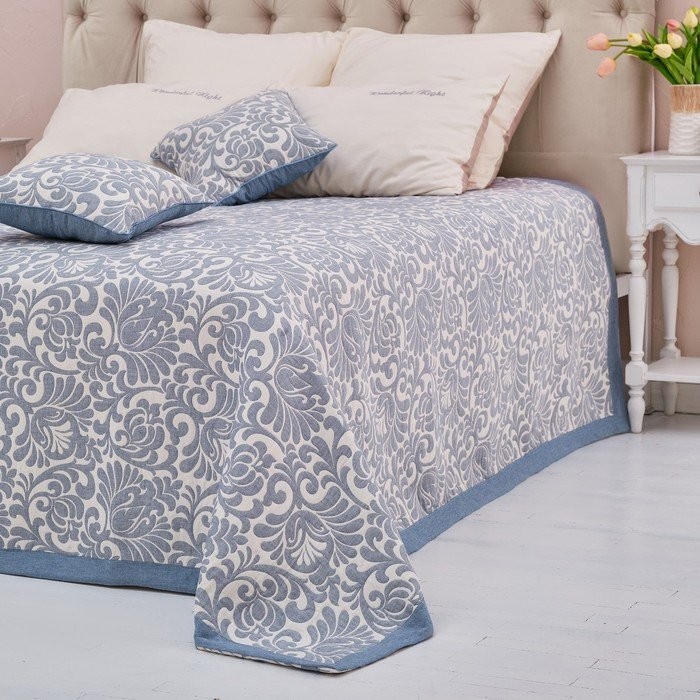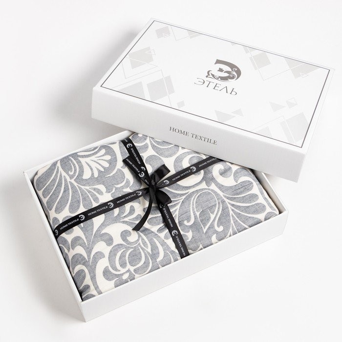 Покрывало хлопковое Этель «Узоры» 180×240 см, цвет серый, 100% хлопок, 300гр/м2