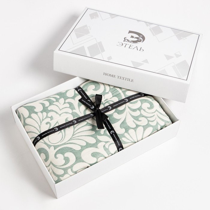 Покрывало хлопковое Этель «Узоры» 200×240 см, цвет зелёный, 100% хлопок, 300гр/м2