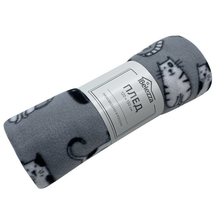 Плед Begemot 120х150см, серый, флис 160г/м², 100% полиэстер