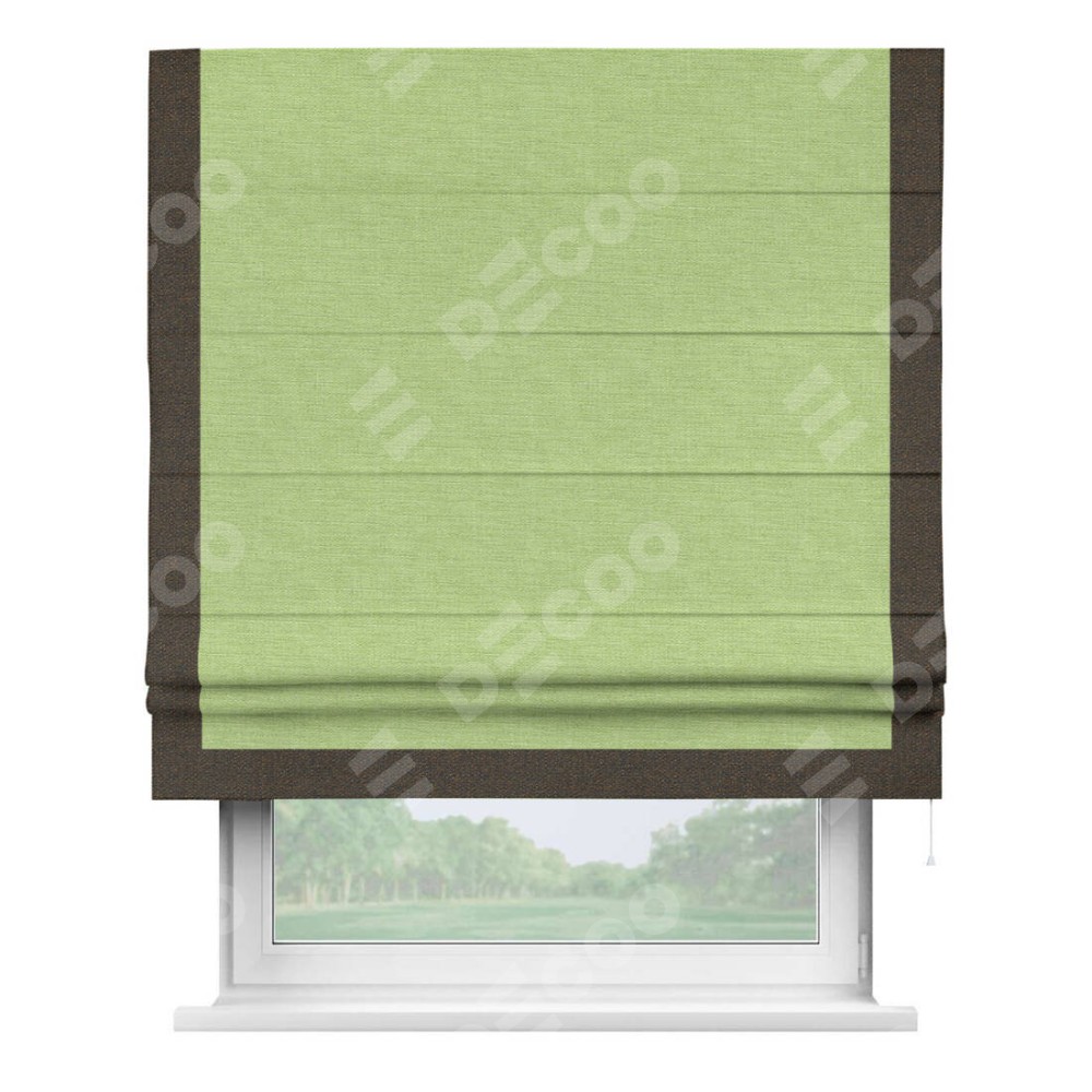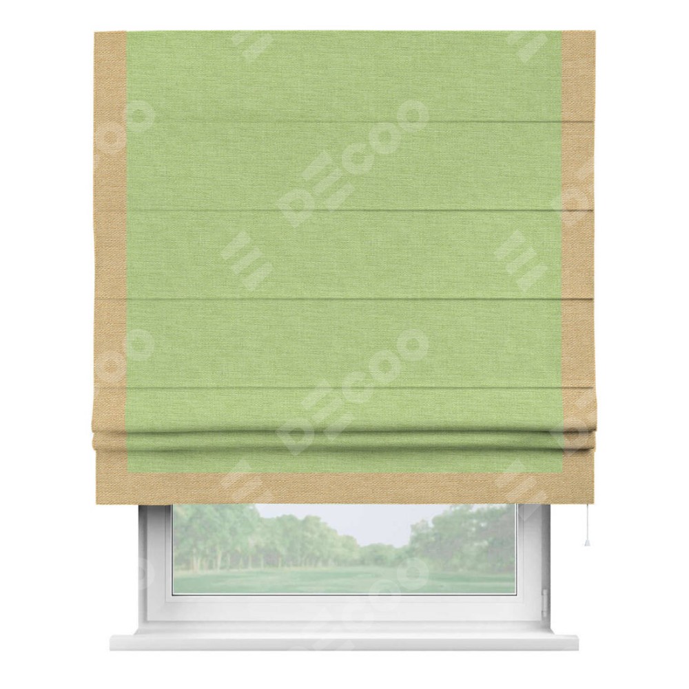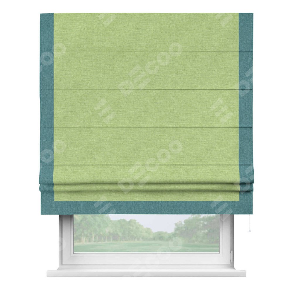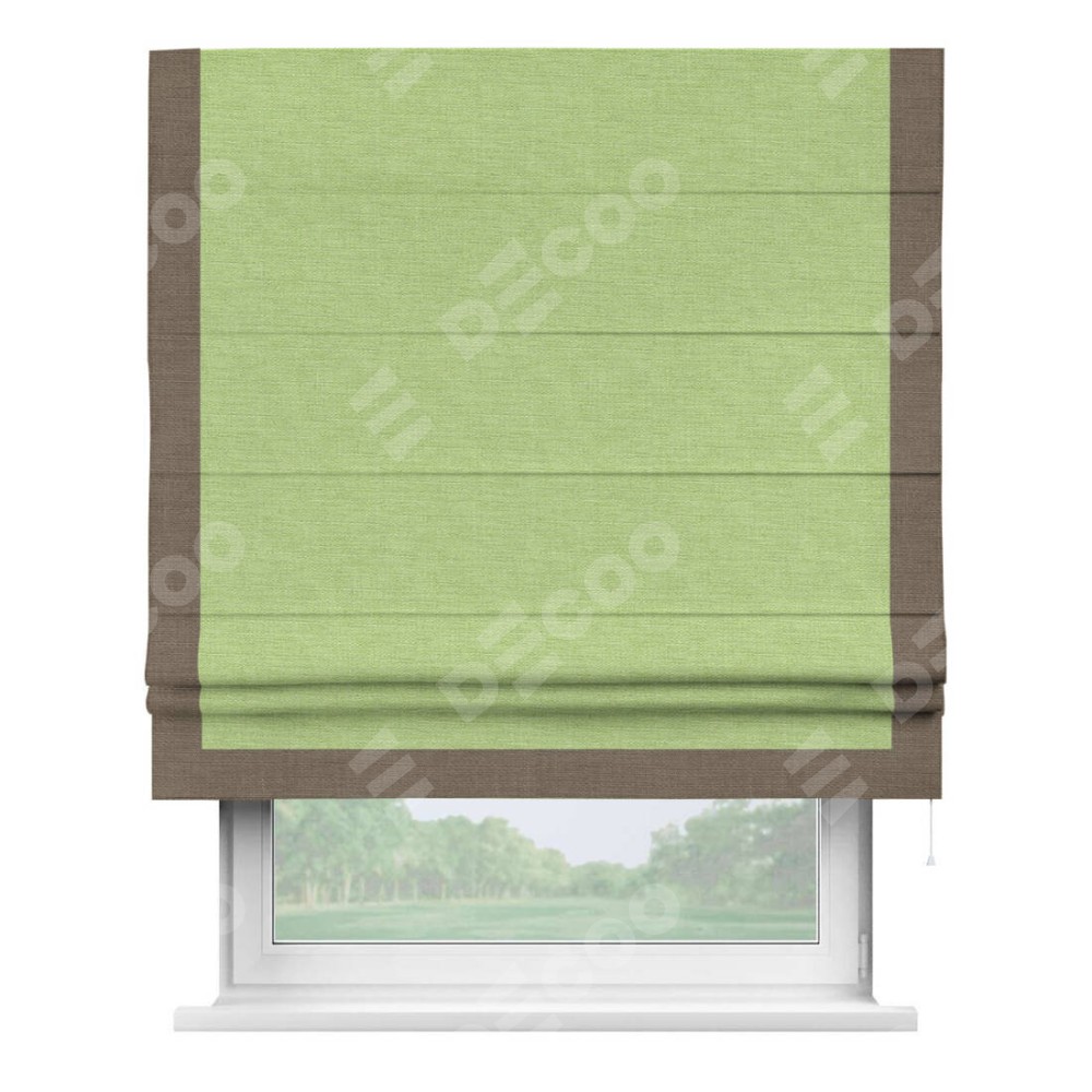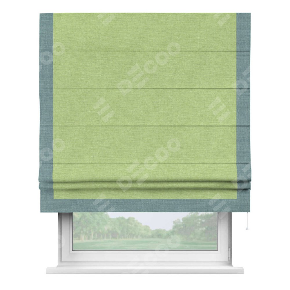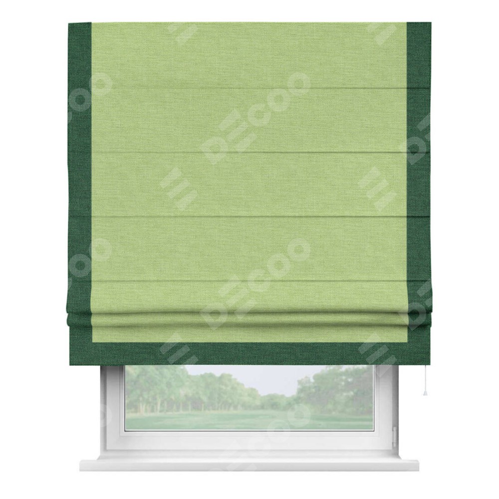 Римская штора «Кортин» с кантом Виктория, для проема, ткань лён зеленый