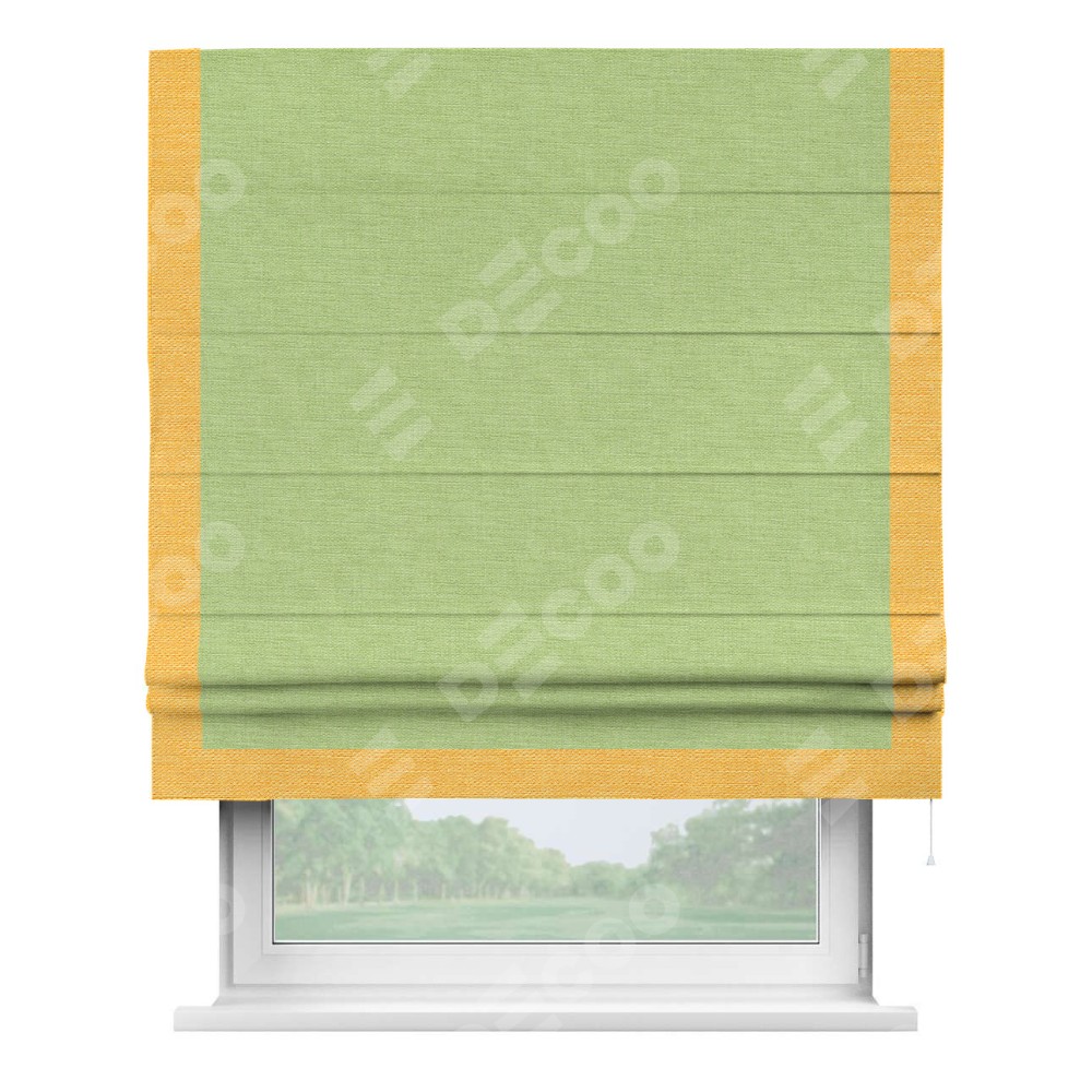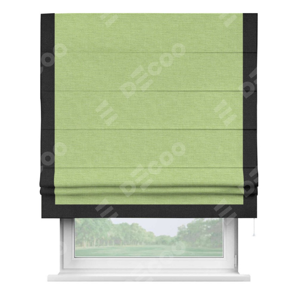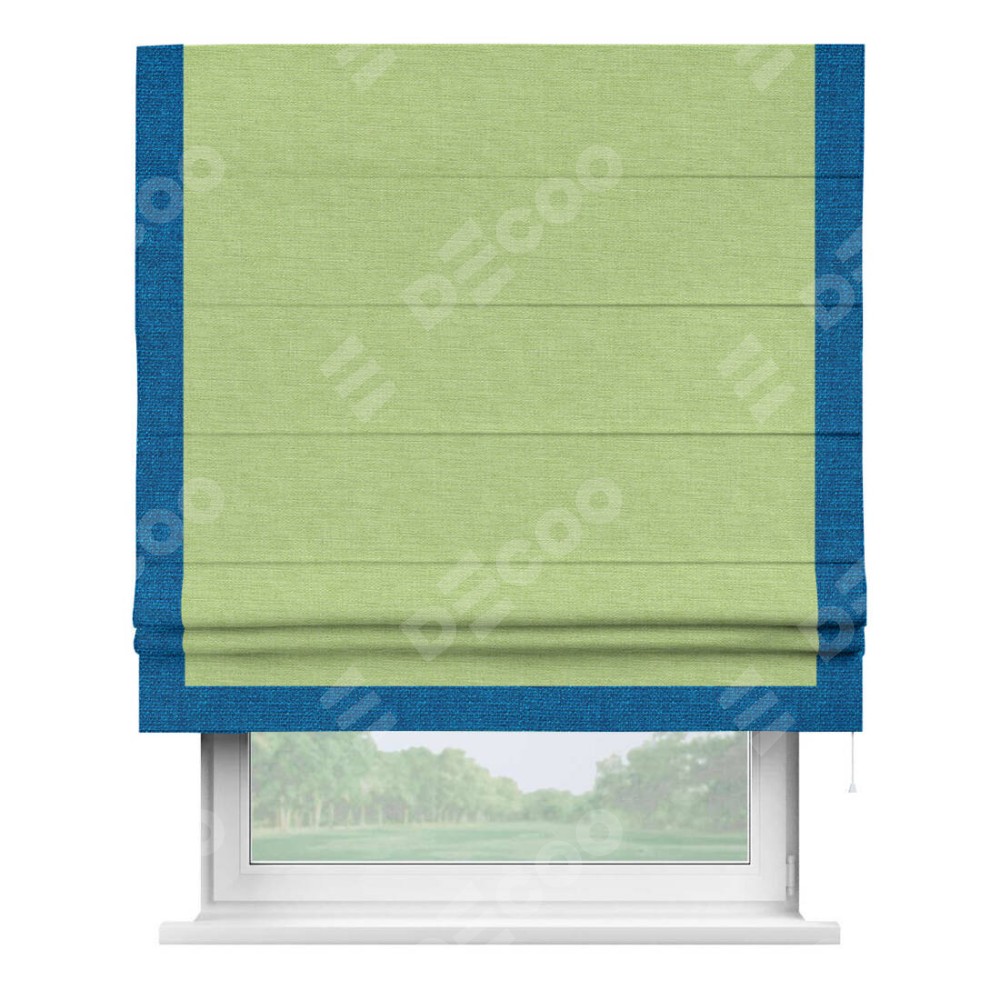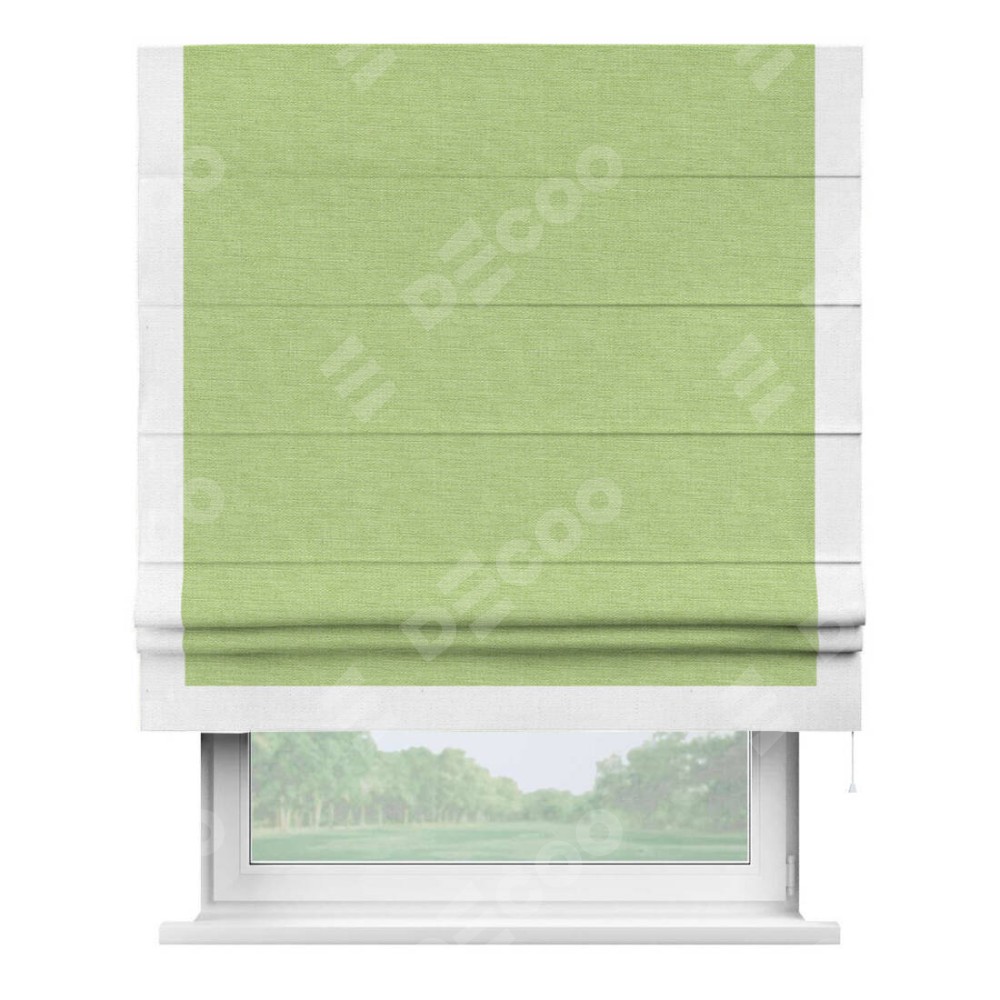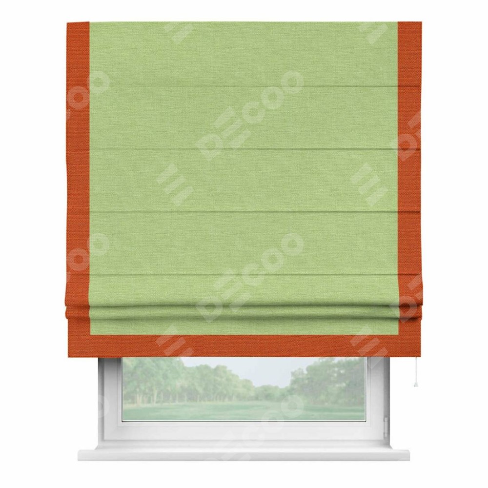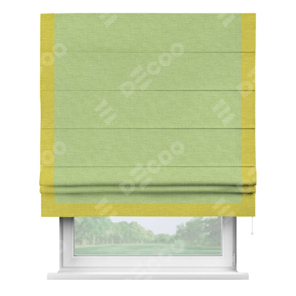 Римская штора «Кортин» с кантом Виктория, для проема, ткань лён зеленый