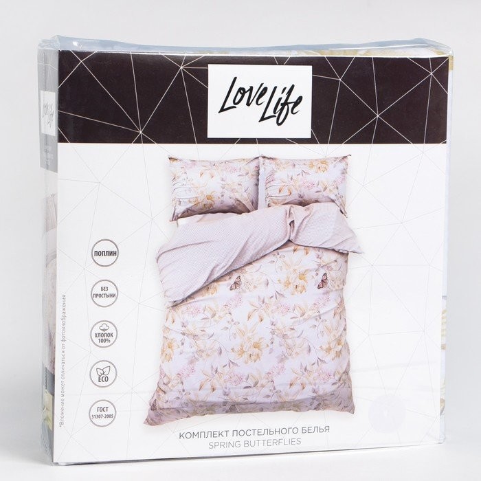 КПБ 2 сп LoveLife Spring butterflies: пододеяльник 180*217см+наволочка 70*70см-2шт, поплин