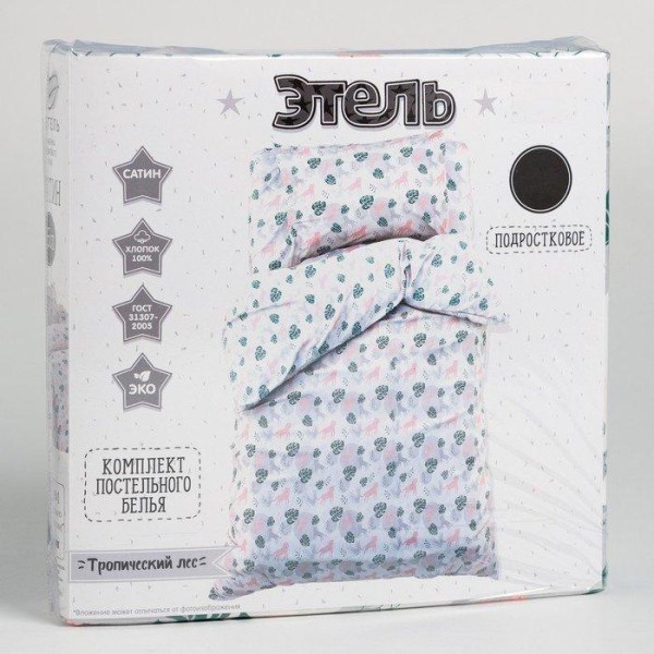 Постельное бельё Этель 1,5 сп «Тропический лес» 143×215 см, 155×214 см, 50×70 см -1 шт, 100% хлопок, сатин