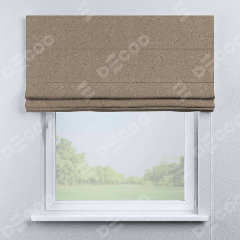 Римская штора производителя «Cortin», используется для проёма, пошита из ткани лён димаут светло-бежевый, артикул ткани 00002. Имеет универсальный механизм и подходит для монтажа: на потолок, на стену и в нишу.