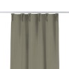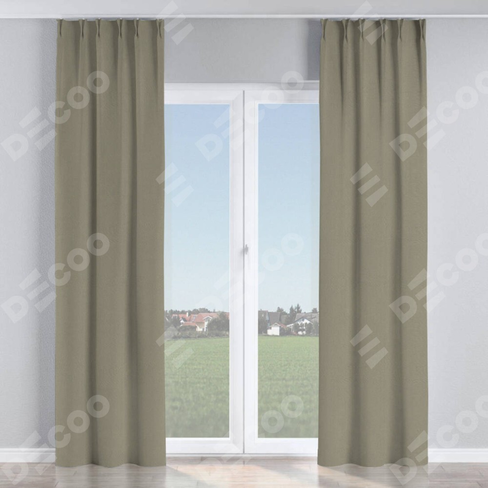 Комплект прямых штор, от производителя «Cortin», пошиты из ткани блэкаут однотонный серо-зелёный, артикул ткани 29568. С изнаночной стороны в верхней части штор пристрачивается шторная лента с декоративными складками «Кустик». Для создания элегантных складок прямые шторы шьются по стандарту с коэффициентом 1:2 (на 100 см. ширины проёма 200 см. ширины ткани).