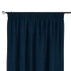 Комплект прямых штор, от производителя «Cortin», пошиты из ткани блэкаут однотонный синий, артикул ткани 29327. С изнаночной стороны в верхней части штор пристрачивается шторная лента с декоративными складками «Карандаш». Для создания элегантных складок прямые шторы шьются по стандарту с коэффициентом 1:2 (на 100 см. ширины проёма 200 см. ширины ткани).