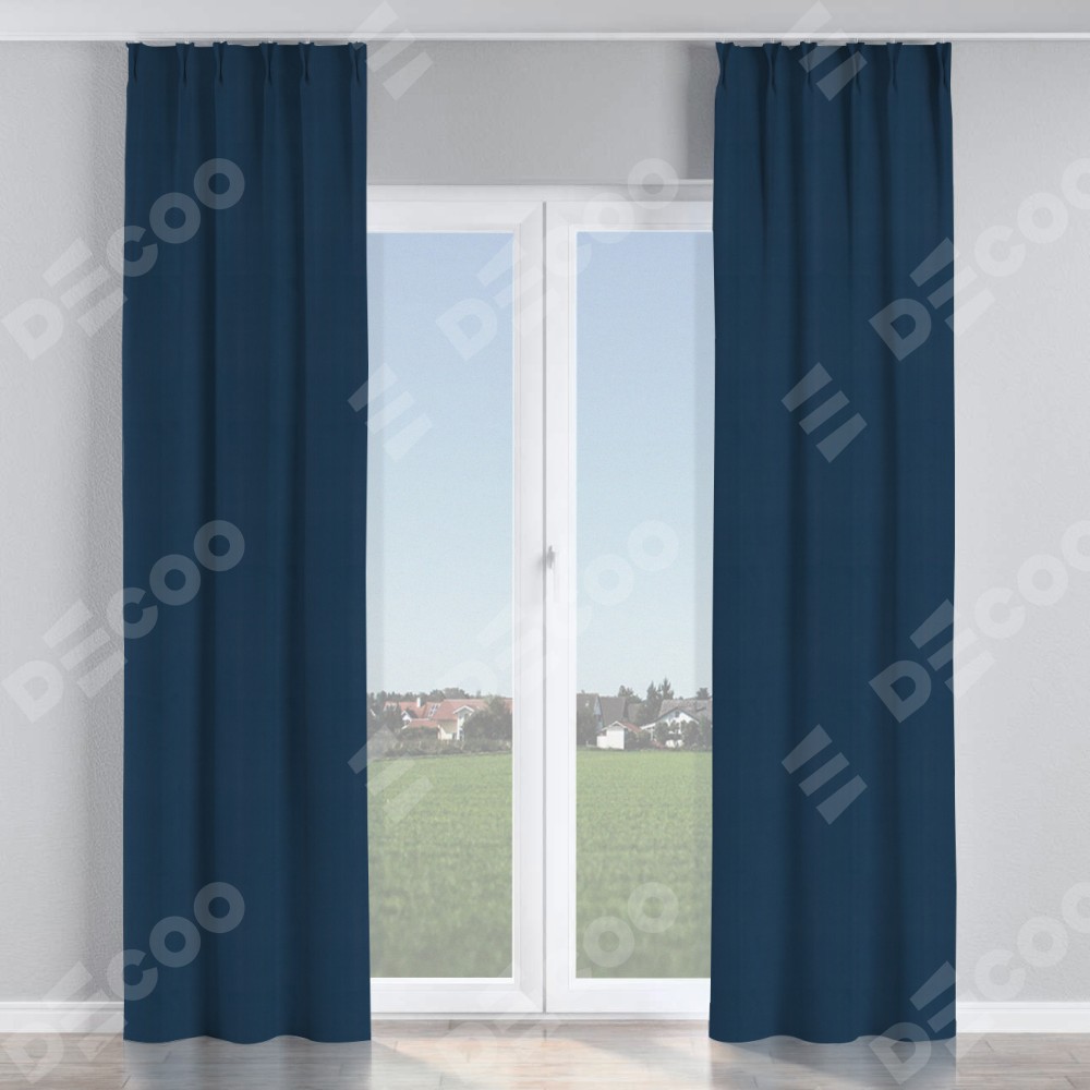 Комплект прямых штор, от производителя «Cortin», пошиты из ткани блэкаут однотонный синий, артикул ткани 29327. С изнаночной стороны в верхней части штор пристрачивается шторная лента с декоративными складками «Кустик». Для создания элегантных складок прямые шторы шьются по стандарту с коэффициентом 1:2 (на 100 см. ширины проёма 200 см. ширины ткани).