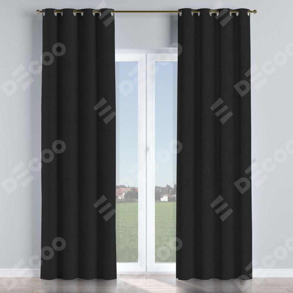 Комплект прямых штор, от производителя «Cortin», пошиты из ткани блэкаут однотонный черный, артикул ткани 79904. Данная модель пошита на люверсах, комплектуется на выбор круглым карнизом и подходит для монтажа на стену или потолок. Прямые шторы на люверсах шьются по стандарту с коэффициентом 1/2 (на 100 см. ширины проёма 200 см. ширины ткани), отличительным преимуществом данной модели является простой способ монтажа. Достаточно повесить ее на трубу и штора готова!