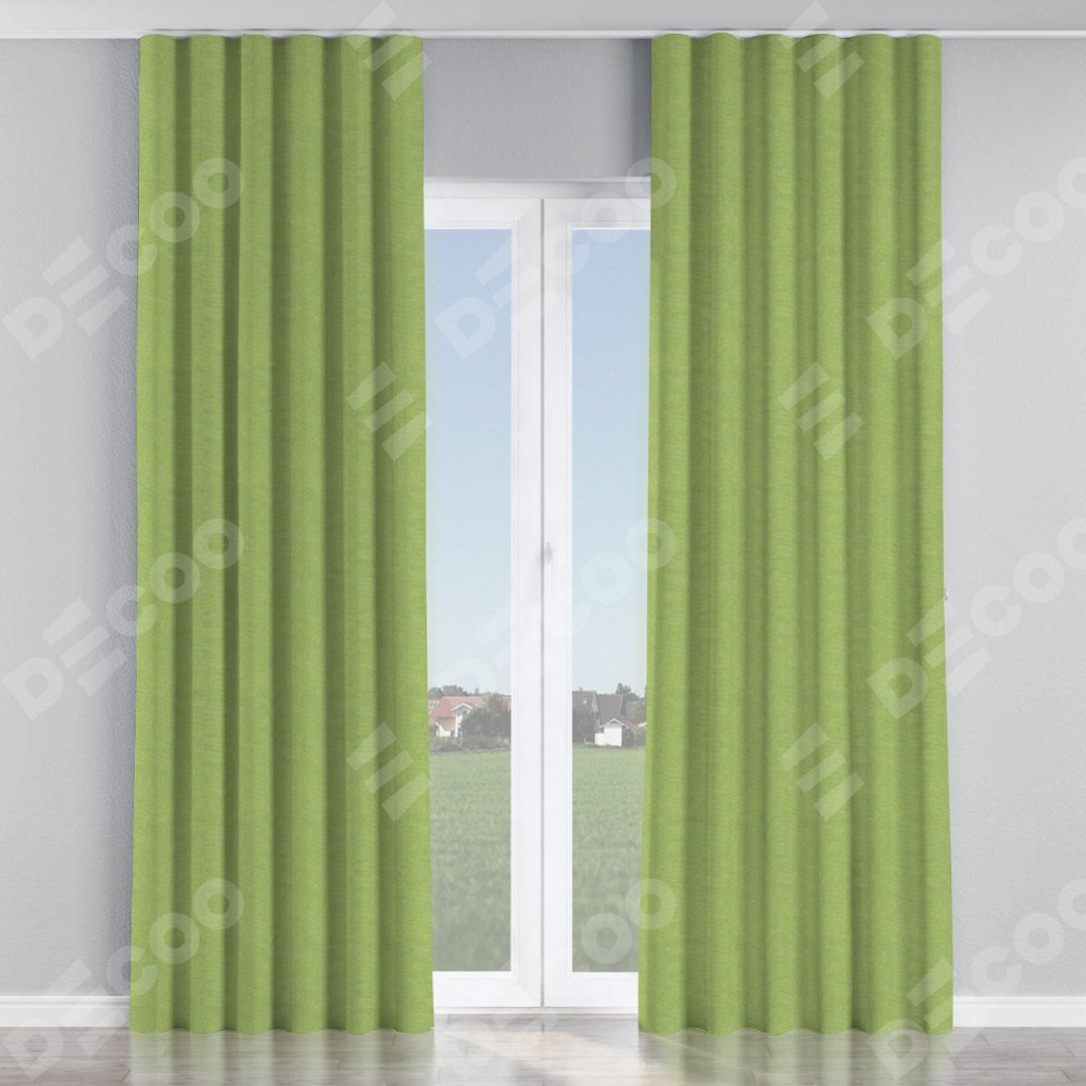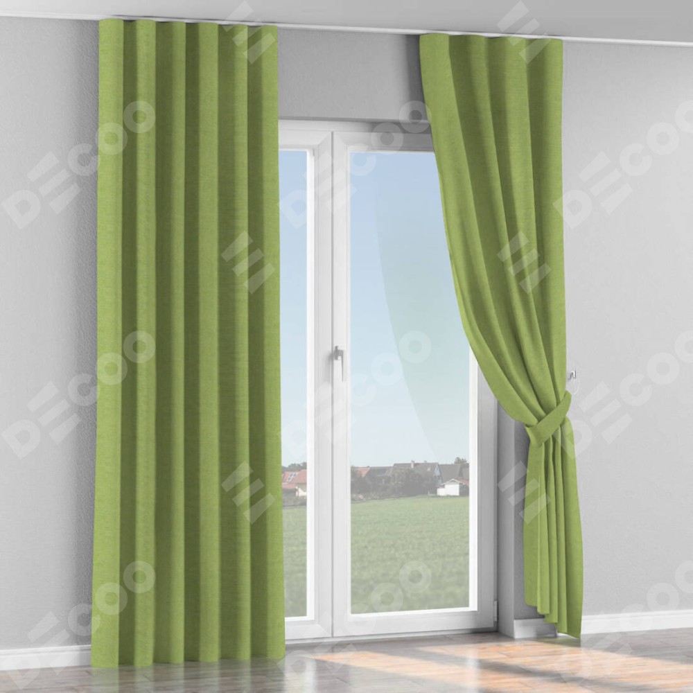 Комплект прямых штор, от производителя «Cortin», пошиты из ткани лён димаут салатовый, артикул ткани 83032. С изнаночной стороны в верхней части штор пристрачивается шторная лента с декоративными складками «Волна». Для создания элегантных складок прямые шторы шьются по стандарту с коэффициентом 1:2 (на 100 см. ширины проёма 200 см. ширины ткани).