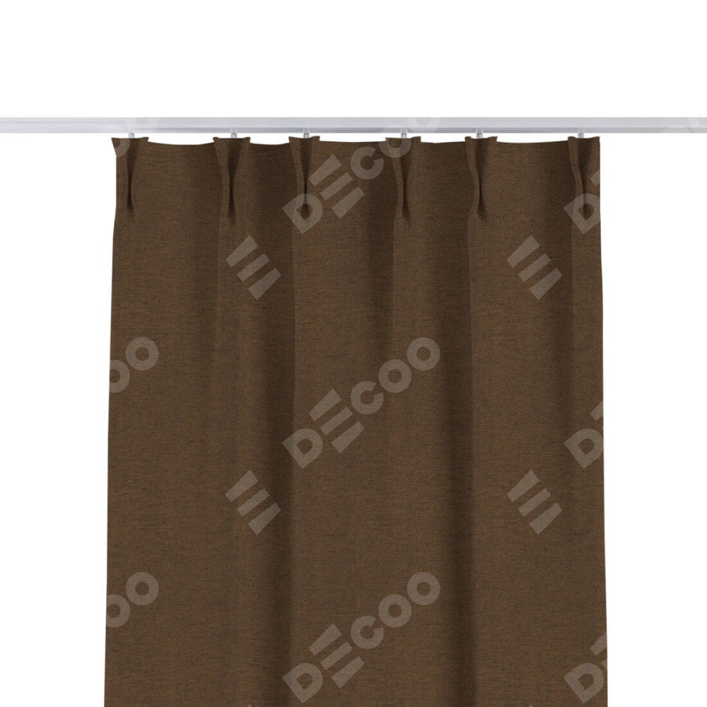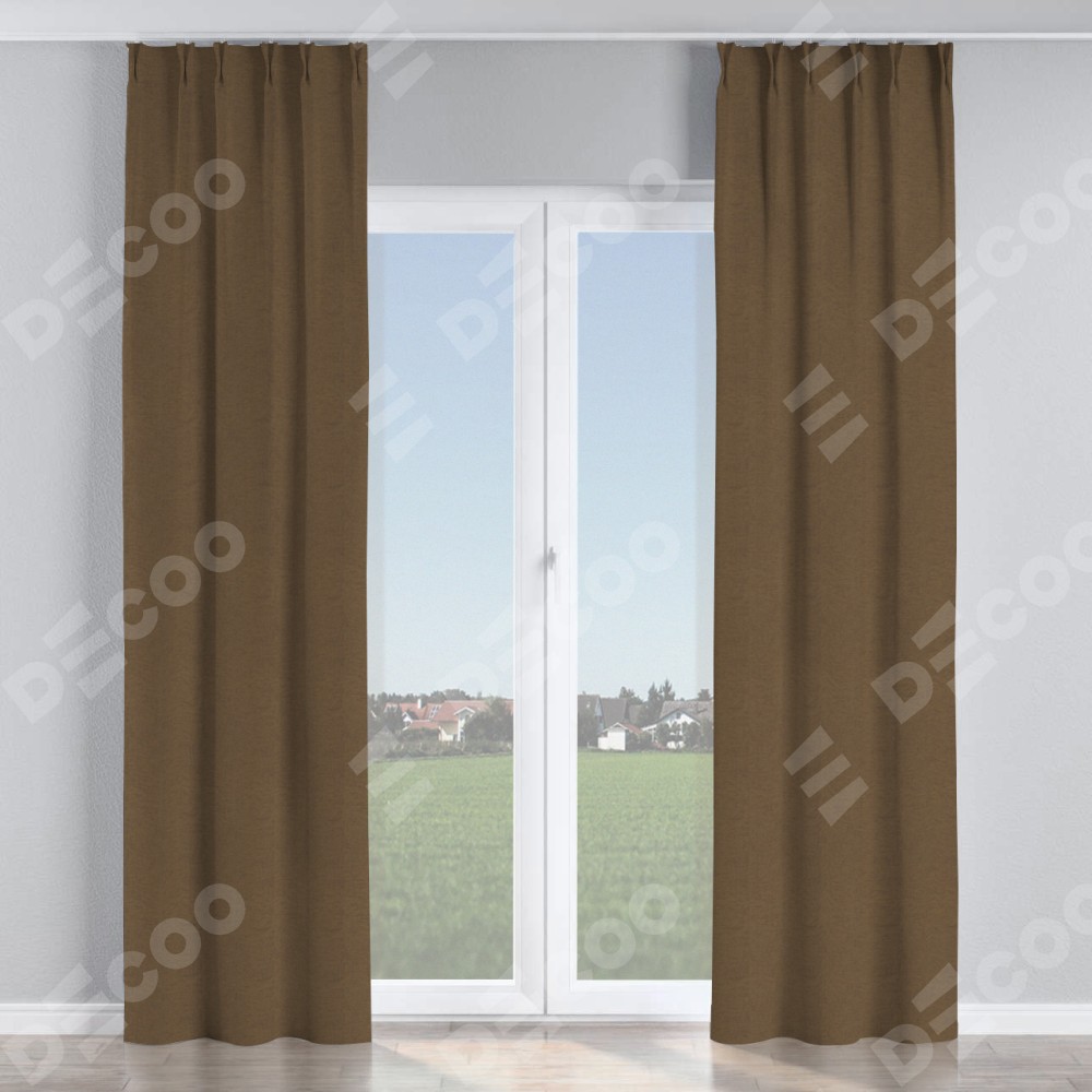 Комплект прямых штор, от производителя «Cortin», пошиты из ткани лён димаут тёмно-коричневый, артикул ткани 83030. С изнаночной стороны в верхней части штор пристрачивается шторная лента с декоративными складками «Кустик». Для создания элегантных складок прямые шторы шьются по стандарту с коэффициентом 1:2 (на 100 см. ширины проёма 200 см. ширины ткани).