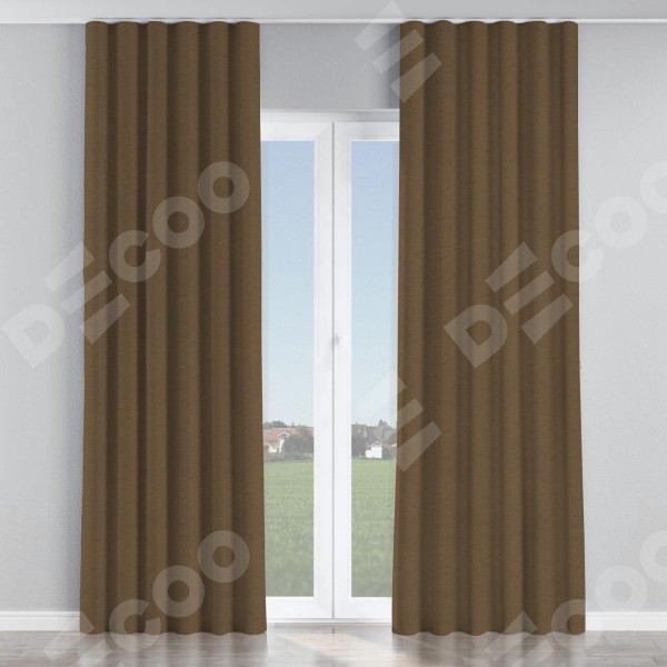 Комплект прямых штор, от производителя «Cortin», пошиты из ткани лён димаут тёмно-коричневый, артикул ткани 83030. С изнаночной стороны в верхней части штор пристрачивается шторная лента с декоративными складками «Волна». Для создания элегантных складок прямые шторы шьются по стандарту с коэффициентом 1:2 (на 100 см. ширины проёма 200 см. ширины ткани).