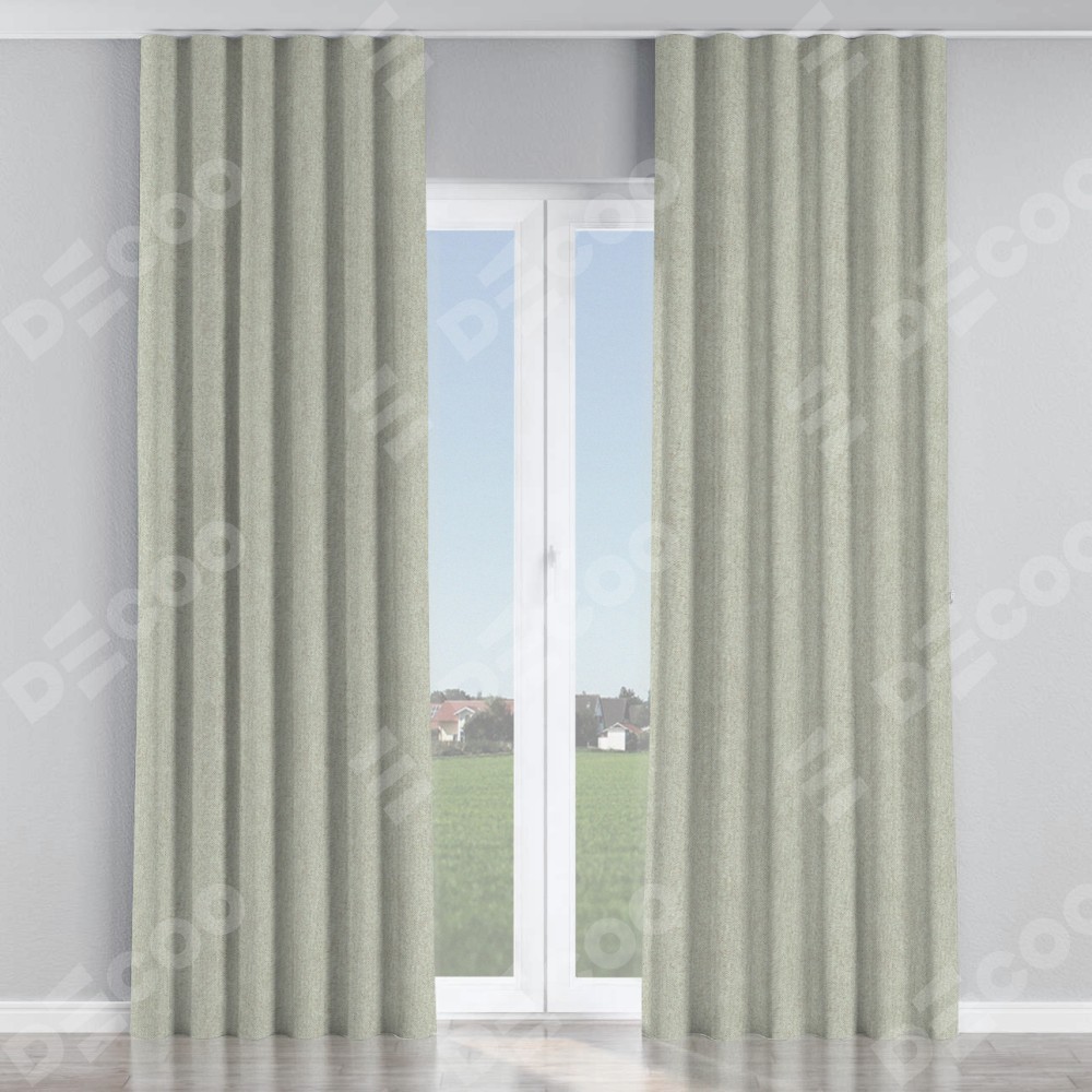 Комплект прямых штор, от производителя «Cortin», пошиты из ткани твид блэкаут коричнево-серый, артикул ткани 21574. С изнаночной стороны в верхней части штор пристрачивается шторная лента с декоративными складками «Волна». Для создания элегантных складок прямые шторы шьются по стандарту с коэффициентом 1:2 (на 100 см. ширины проёма 200 см. ширины ткани).