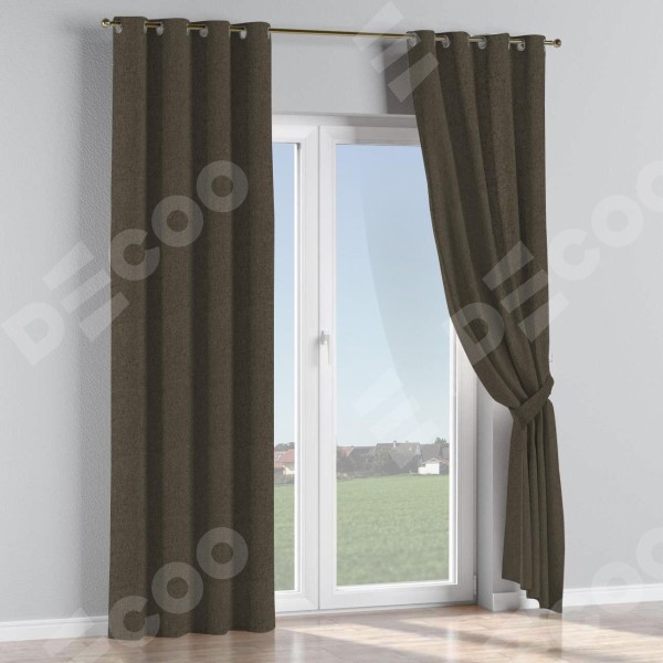 Комплект прямых штор, от производителя «Cortin», пошиты из ткани твид блэкаут тёмно-коричневый, артикул ткани 21584. Данная модель пошита на люверсах, комплектуется на выбор круглым карнизом и подходит для монтажа на стену или потолок. Прямые шторы на люверсах шьются по стандарту с коэффициентом 1/2 (на 100 см. ширины проёма 200 см. ширины ткани), отличительным преимуществом данной модели является простой способ монтажа. Достаточно повесить ее на трубу и штора готова!