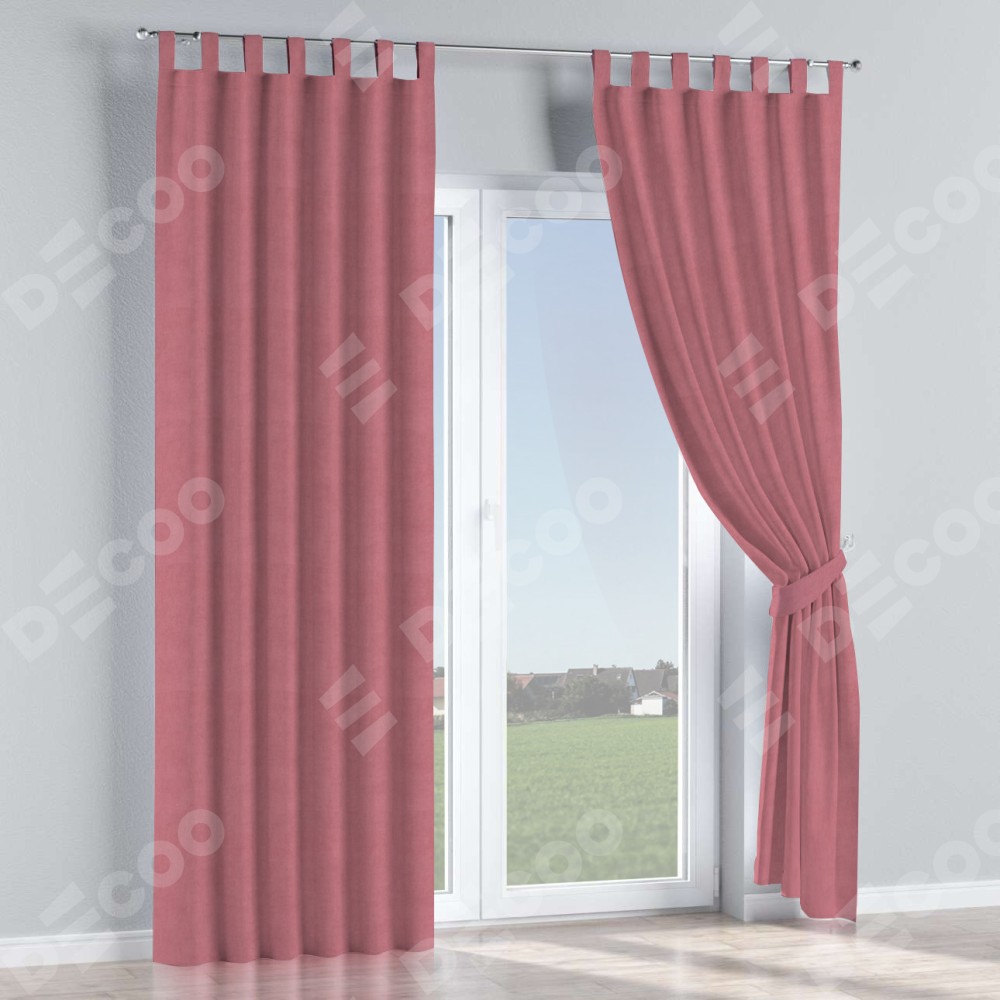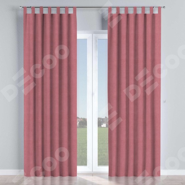 Комплект прямых штор, от производителя «Cortin», пошиты из ткани вельвет брусника, артикул ткани 85550. Данная модель пошита на петлях, комплектуется на выбор круглым карнизом и подходит для монтажа на стену или потолок. Прямые шторы на петлях шьются по стандарту с коэффициентом 1/2 (на 100 см. ширины проёма 200 см. ширины ткани), отличительным преимуществом данной модели является простой способ монтажа. Достаточно повесить ее на трубу и штора готова!