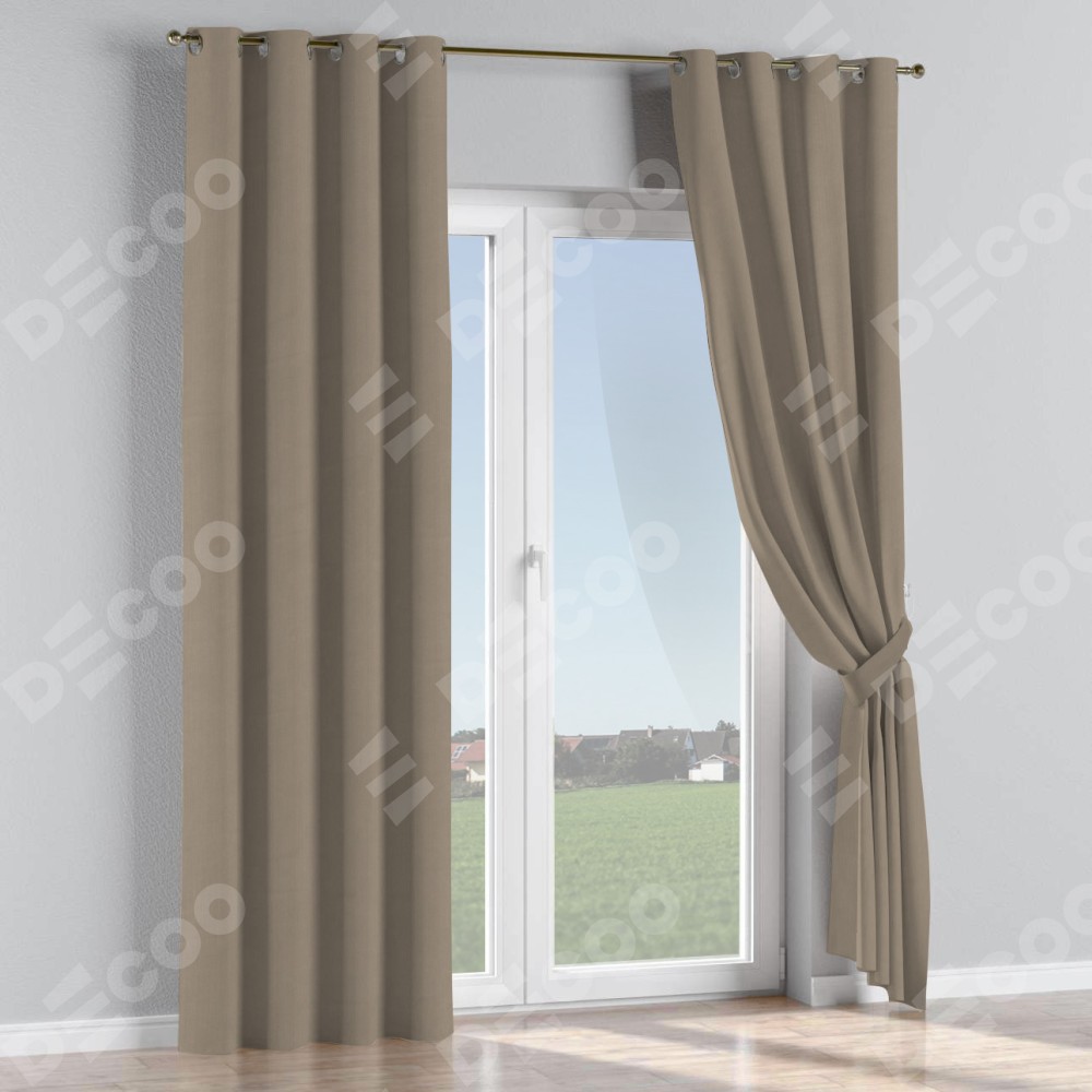 Комплект прямых штор, от производителя «Cortin», пошиты из ткани вельвет кофейный, артикул ткани 30980. Данная модель пошита на люверсах, комплектуется на выбор круглым карнизом и подходит для монтажа на стену или потолок. Прямые шторы на люверсах шьются по стандарту с коэффициентом 1/2 (на 100 см. ширины проёма 200 см. ширины ткани), отличительным преимуществом данной модели является простой способ монтажа. Достаточно повесить ее на трубу и штора готова!