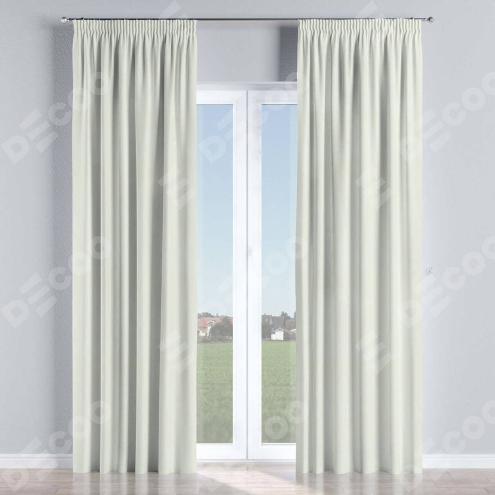 Комплект прямых штор, от производителя «Cortin», пошиты из ткани вельвет кремовый, артикул ткани 85524. С изнаночной стороны в верхней части штор пристрачивается шторная лента с декоративными складками «Карандаш». Для создания элегантных складок прямые шторы шьются по стандарту с коэффициентом 1:2 (на 100 см. ширины проёма 200 см. ширины ткани).