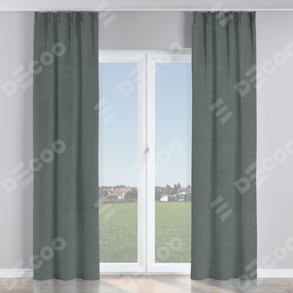 Комплект прямых штор, от производителя «Cortin», пошиты из ткани вельвет серый, артикул ткани 85542. С изнаночной стороны в верхней части штор пристрачивается шторная лента с декоративными складками «Кустик». Для создания элегантных складок прямые шторы шьются по стандарту с коэффициентом 1:2 (на 100 см. ширины проёма 200 см. ширины ткани).
