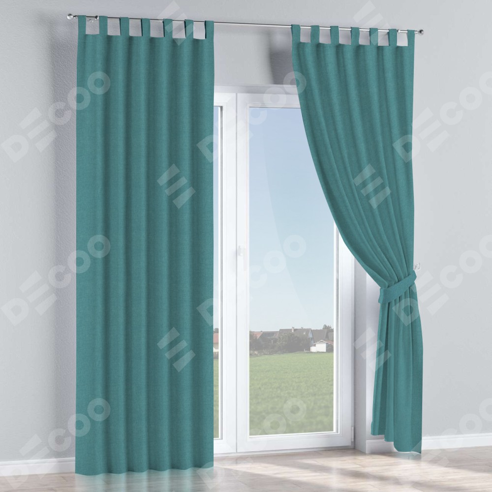 Комплект прямых штор, от производителя «Cortin», пошиты из ткани лён бирюзовый, артикул ткани 53436. Данная модель пошита на петлях, комплектуется на выбор круглым карнизом и подходит для монтажа на стену или потолок. Прямые шторы на петлях шьются по стандарту с коэффициентом 1/2 (на 100 см. ширины проёма 200 см. ширины ткани), отличительным преимуществом данной модели является простой способ монтажа. Достаточно повесить ее на трубу и штора готова!