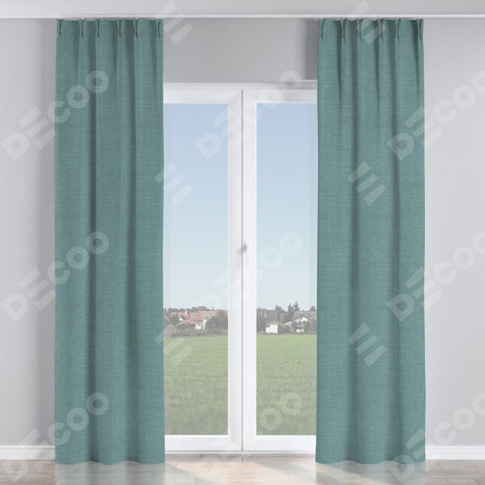 Комплект прямых штор, от производителя «Cortin», пошиты из ткани лён голубой, артикул ткани 74736. С изнаночной стороны в верхней части штор пристрачивается шторная лента с декоративными складками «Кустик». Для создания элегантных складок прямые шторы шьются по стандарту с коэффициентом 1:2 (на 100 см. ширины проёма 200 см. ширины ткани).