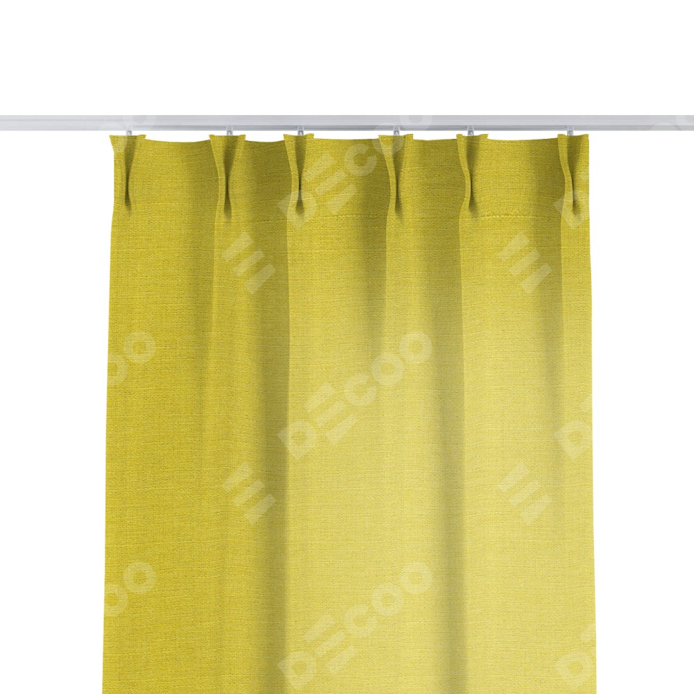 Комплект прямых штор, от производителя «Cortin», пошиты из ткани лён салатовый, артикул ткани 53437. С изнаночной стороны в верхней части штор пристрачивается шторная лента с декоративными складками «Кустик». Для создания элегантных складок прямые шторы шьются по стандарту с коэффициентом 1:2 (на 100 см. ширины проёма 200 см. ширины ткани).