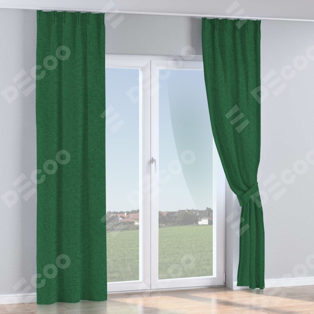 Комплект прямых штор, от производителя «Cortin», пошиты из ткани лён серо-зелёный, артикул ткани 63740. С изнаночной стороны в верхней части штор пристрачивается шторная лента с декоративными складками «Кустик». Для создания элегантных складок прямые шторы шьются по стандарту с коэффициентом 1:2 (на 100 см. ширины проёма 200 см. ширины ткани).