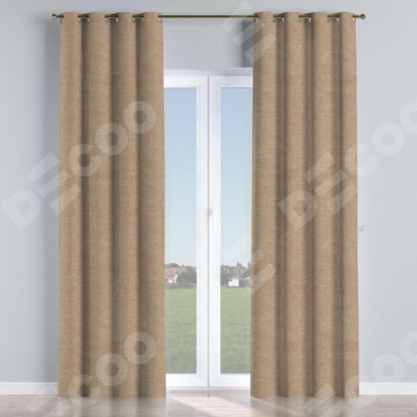 Комплект прямых штор, от производителя «Cortin», пошиты из ткани лён кашемир коричневый, артикул ткани 21614. Данная модель пошита на люверсах, комплектуется на выбор круглым карнизом и подходит для монтажа на стену или потолок. Прямые шторы на люверсах шьются по стандарту с коэффициентом 1/2 (на 100 см. ширины проёма 200 см. ширины ткани), отличительным преимуществом данной модели является простой способ монтажа. Достаточно повесить ее на трубу и штора готова!