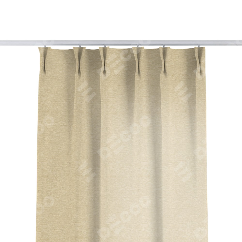 Комплект прямых штор, от производителя «Cortin», пошиты из ткани софт однотонный светло-бежевый, артикул ткани 54426. С изнаночной стороны в верхней части штор пристрачивается шторная лента с декоративными складками «Кустик». Для создания элегантных складок прямые шторы шьются по стандарту с коэффициентом 1:2 (на 100 см. ширины проёма 200 см. ширины ткани).