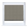 Римская штора кассетного типа, производителя «Cortin», устанавливается только на пластиковые окна и прилегает к стеклопакету, пошита из ткани лён димаут серо-зелёный, артикул 00003.
