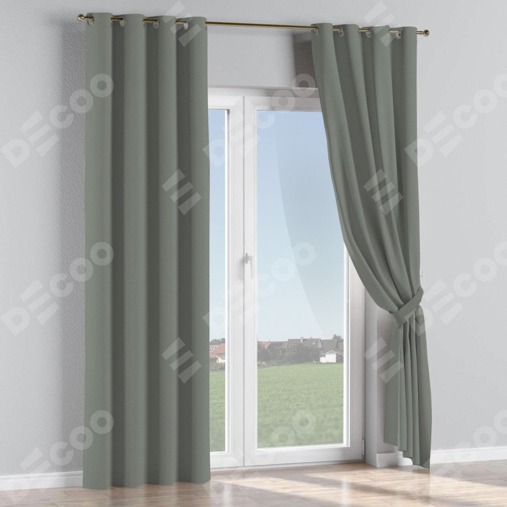 Комплект прямых штор, от производителя «Cortin», пошиты из ткани блэкаут однотонный тёмно-серый, артикул ткани 18077. Данная модель пошита на люверсах, комплектуется на выбор круглым карнизом и подходит для монтажа на стену или потолок. Прямые шторы на люверсах шьются по стандарту с коэффициентом 1/2 (на 100 см. ширины проёма 200 см. ширины ткани), отличительным преимуществом данной модели является простой способ монтажа. Достаточно повесить ее на трубу и штора готова!