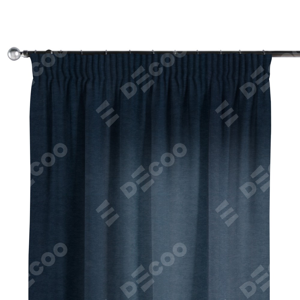 Комплект прямых штор, от производителя «Cortin», пошиты из ткани софт однотонный тёмно-синий, артикул ткани 33111. С изнаночной стороны в верхней части штор пристрачивается шторная лента с декоративными складками «Карандаш». Для создания элегантных складок прямые шторы шьются по стандарту с коэффициентом 1:2 (на 100 см. ширины проёма 200 см. ширины ткани).