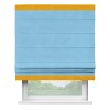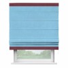 Римская штора производителя «Cortin», используется для проёма, пошита из ткани вельвет голубой, артикул ткани 85544. Отделка шторы кантом «Горизонт», ткань для канта используется из вельвета разной расцветки на выбор. Имеет универсальный механизм и подходит для монтажа: на потолок, на стену и в нишу.
