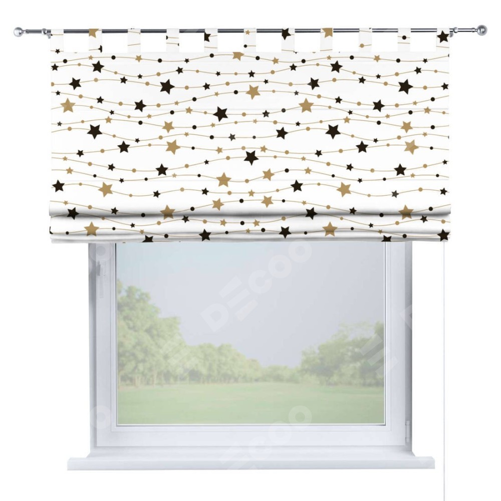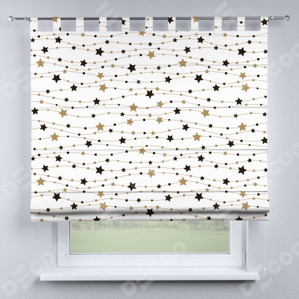 Римская штора производителя «Cortin», используется для проёма, пошита из ткани блэкаут с нанесением сублимационной печати «Звёздная нить». Данная модель пошита на петлях, комплектуется на выбор круглым карнизом и подходит для монтажа на стену. Римская штора на петлях имеет простую систему регулировки высоты, отличительным преимуществом данной модели является простой способ монтажа. Достаточно повесить ее на трубу и штора готова!