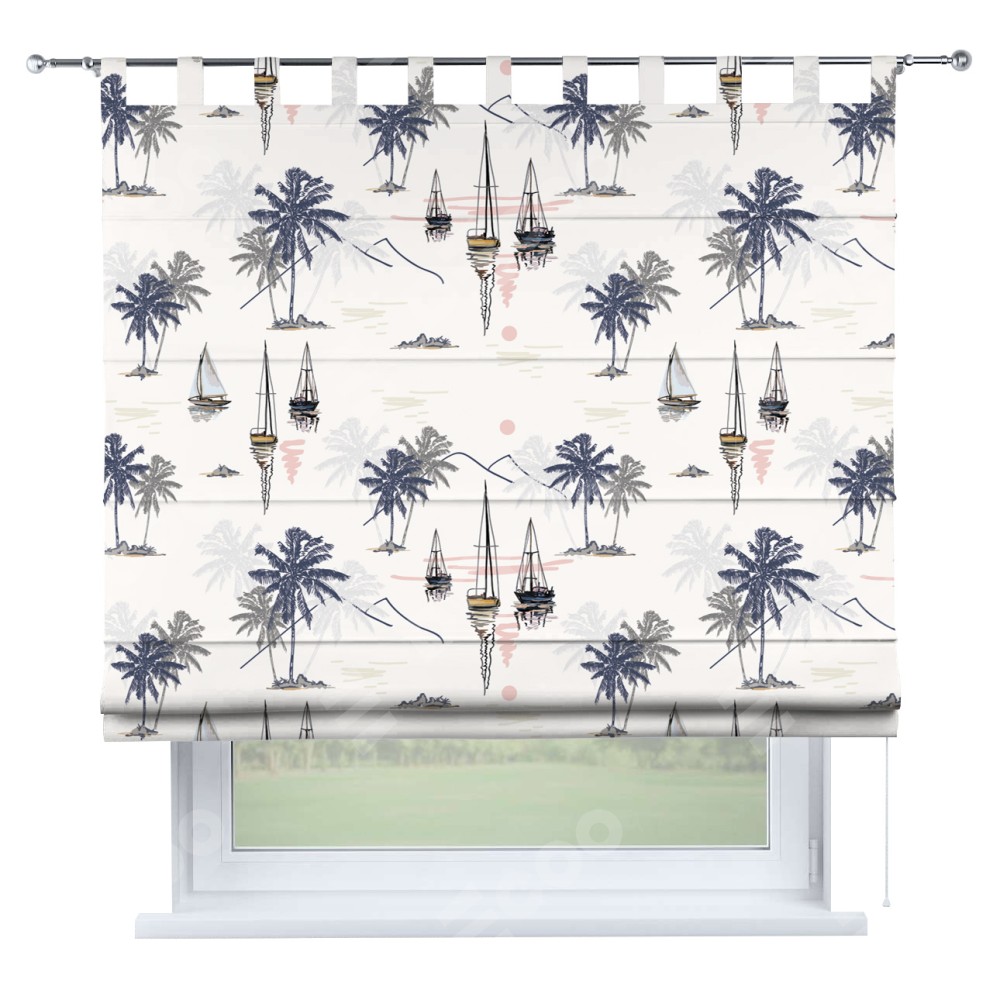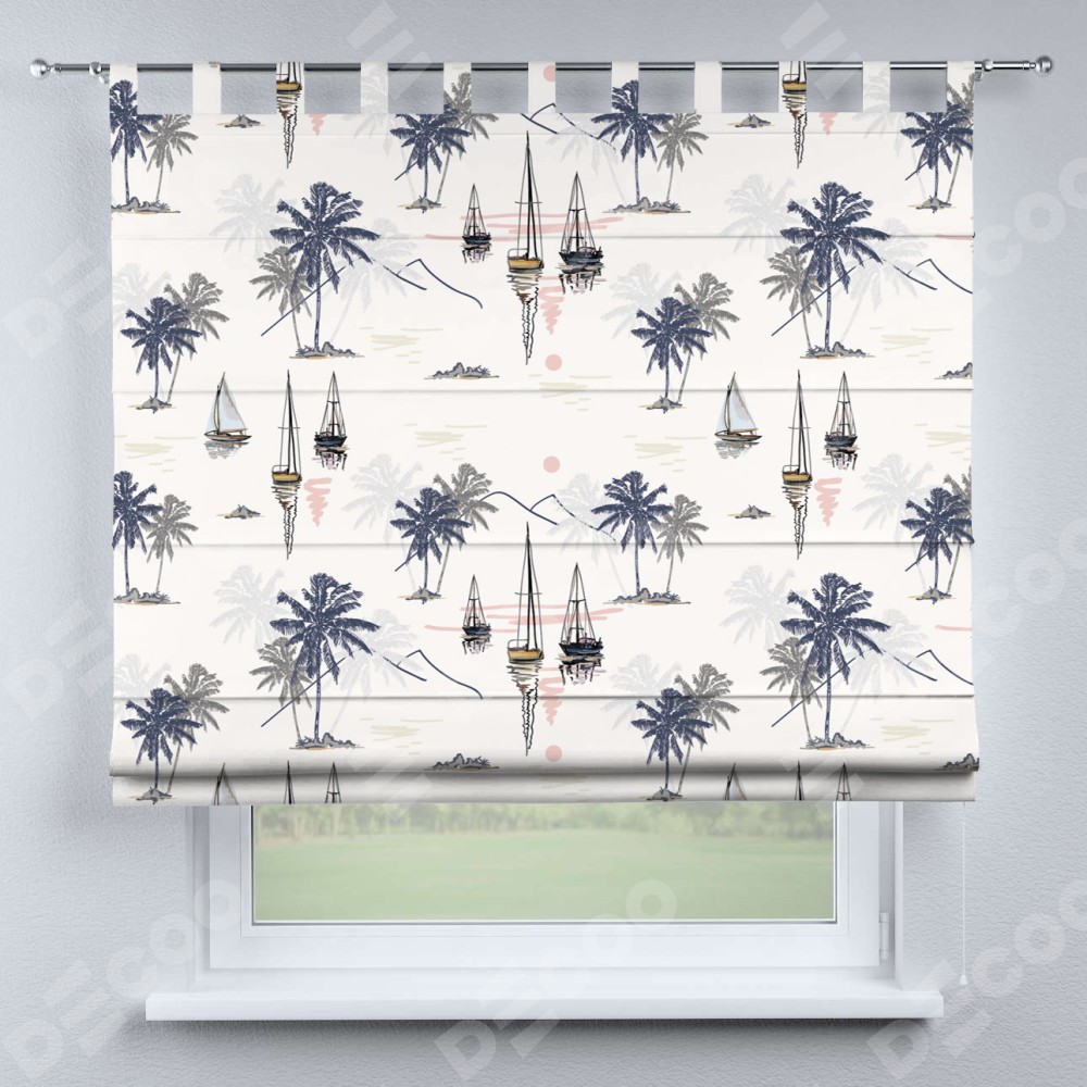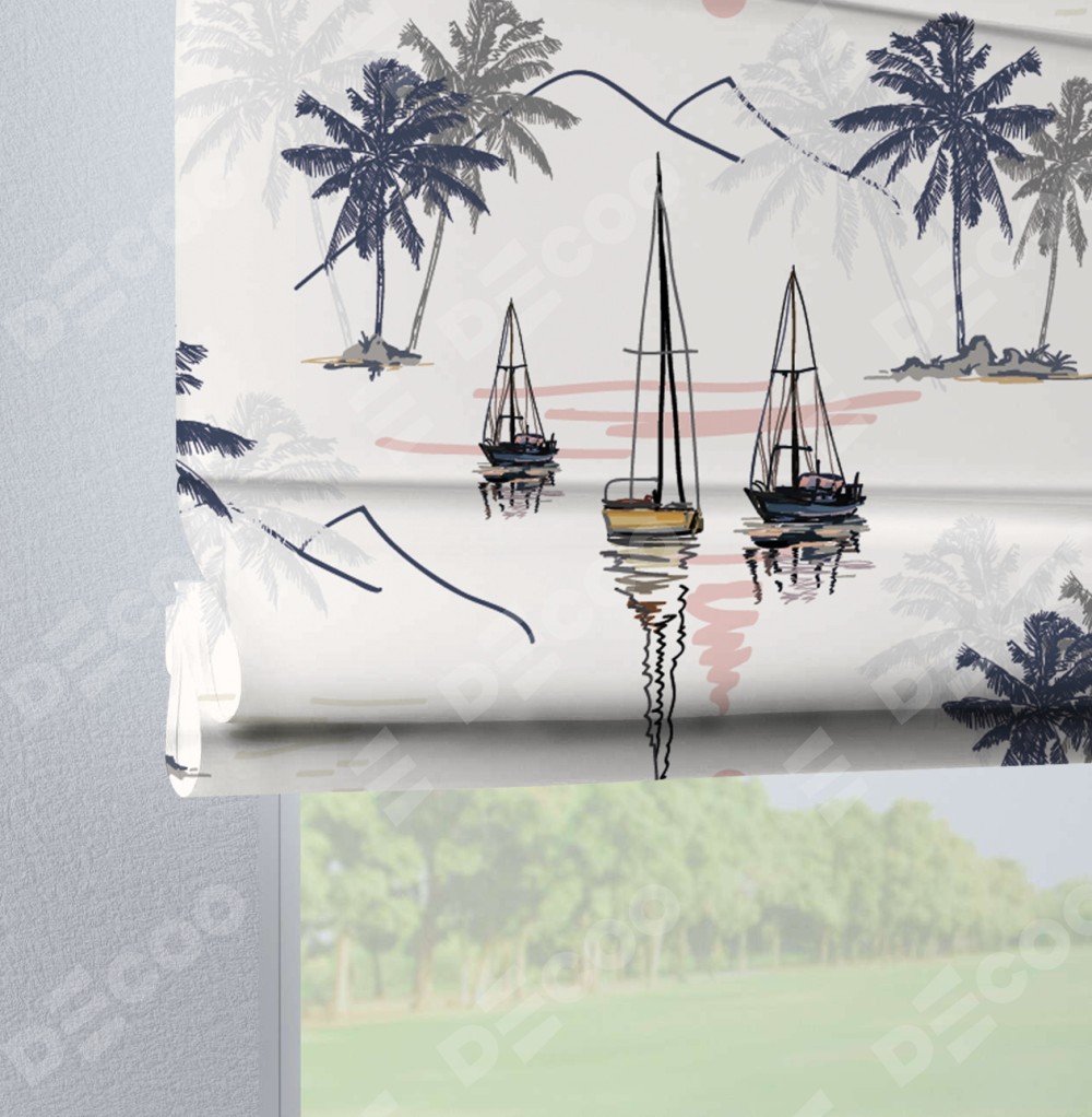 Римская штора производителя «Cortin», используется для проёма, пошита из ткани блэкаут с нанесением сублимационной печати «Морское путешествие». Данная модель пошита на петлях, комплектуется на выбор круглым карнизом и подходит для монтажа на стену. Римская штора на петлях имеет простую систему регулировки высоты, отличительным преимуществом данной модели является простой способ монтажа. Достаточно повесить ее на трубу и штора готова!